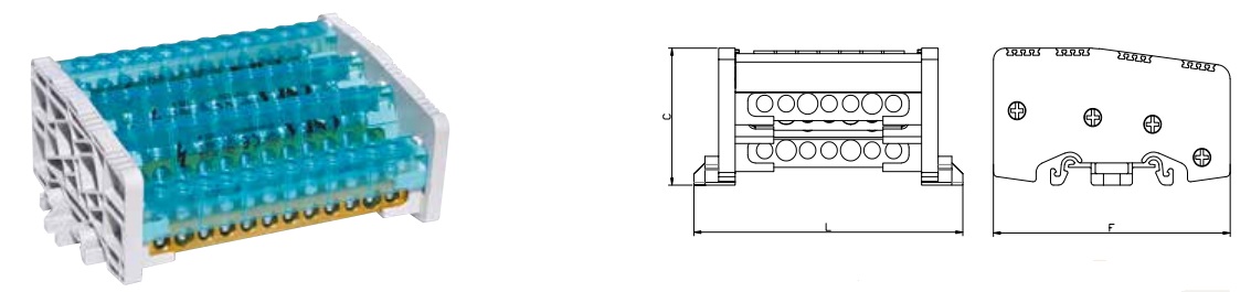 Этот блок — низкий, четырехполюсный распределительный элемент, предназначенный для безопасной и упорядоченной коммутации четырех потенциалов . Он обеспечивает распределение высокого тока от четырех входящих проводов к множеству отходящих, экономя место в электрощитах.