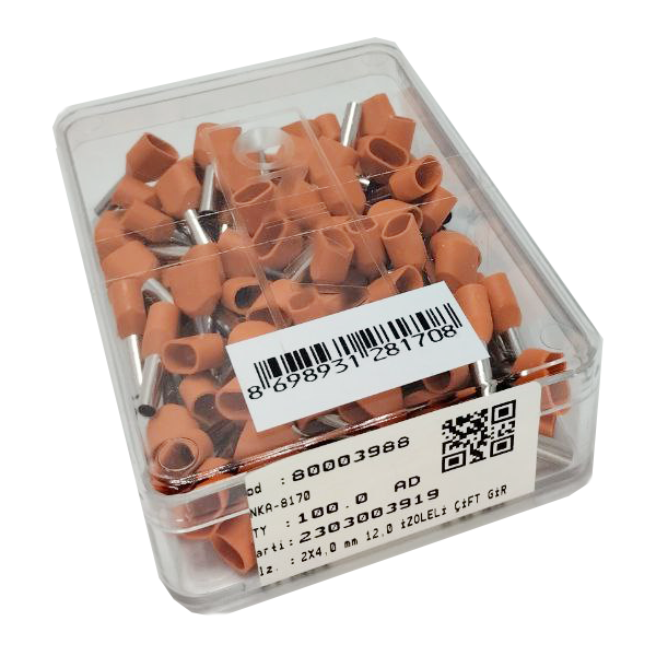 80003988 | 2X4,0 mm 12,0 | ТРУБЧАТЫЕ ДВОЙНЫЕ НАКОНЕЧНИКИ С ИЗОЛЯЦИЕЙ DIN НОРМА |Оранжевые - купить в Алматы